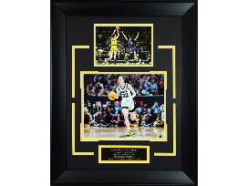 Caitlin Clark framed University of Iowa basketball collage and University of Iowa framed wool logo banner featuring the evolution of the team's logo over the years.