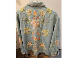 Johnny Was Workshop Flower Embroidered Jean Jacket (Size Medium)