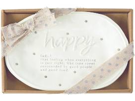 Share your treats on the 7 1/2" x 10 1/2" Mud Pie Happy Definition Plate.