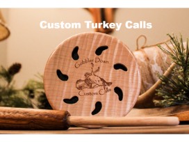 From South Carolina expert hunter Sean Calhoun who owns "Gobbler Down custom calls. . What he refers to as his go-to design, the "Call Girl". It's a walnut soundbox with slate diaphram, signed by Sean. Comes with a walnut striker and buff pad to keep the slate clean and tuned. Sounds just like the female turkeys in his backyard.