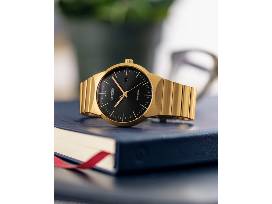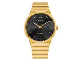 Axiom's refined yet sleek design offers a day-to-night fashion option for the avid trendsetter. This model features a gold-tone stainless steel bracelet with a three-hand black dial, gold-tone accents and date display. Featuring our Eco-Drive technology - powered by light, any light. Never needs a battery.