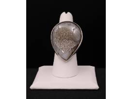 Custom made and hand-crafted designer ring. Raw Gray Onyx teardrop set in sterling silver.