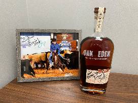 Forrie J Smith Signed bottle of Oak & Edan Whiskey and signed photo of Forrie J Smith.