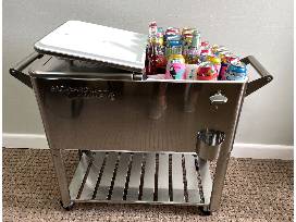 Stainless-steel patio cooler filled with beverages and ready for your patio!