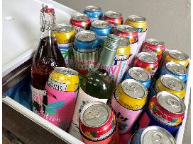 Case of Lagunitas, a bottle of Sea Glass Wine, a bottle of Sangria, and cozies for your cans.