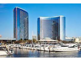 Whether you are in town for business or vacation, you will be charmed by Marriott Marquis San Diego Marina. Our waterfront hotel overlooks our private marina and is near numerous attractions, including Seaport Village, San Diego Convention Center, the Gaslamp Quarter, and Petco Park. Every hotel room and suite has impressive views of the city or San Diego Bay. Recharge on indulgent bedding and take advantage of the relaxed reading chairs, flat-screen TVs, desks and Wi-Fi; many rooms have private balconies. Pamper yourself at our hotel's day spa, work out in our 24-hour gym or take a dip in our outdoor pools. Indulge with creative American, Mexican and Asian-fusion fare at our award-winning restaurants. Event planners love our recently redesigned indoor and picture-perfect outdoor venues, combining nearly 271,000 square feet of hotel function space with bespoke event services.