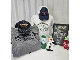 0The great folks at Pinewood Cove Resort have donated an amazing swag bundle. In this package you will get: An awesome reusable shopping tote, a hilarious "Campers Have S'more Fun" sign, a Pinewood Cove California License plate sticker, a Pinewood Cove koozie to keep your beverage cool, 1 medium women's shirt and 1 large Men's Pinewood Cove shirt, a cool tumbler, ankle socks and 2 hats. There is enough for all of the family to sport their swag!