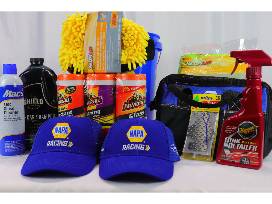 2 napa racing caps, glass cleaner, microfiber body washing mitt, 3 pack of Armor All products, napa tool bag, car shampoo, 3 pack of air fresheners, 12 micro towels and a mist and wipe detail spray!