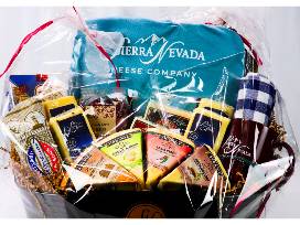 Bid now on this amazing basket of gourmet cheeses and more from Sierra Nevada Cheese . In this basket you will receive one wood cutting board, one Sierra Nevada Cheese Co T shirt size 2X, Mini Crocantini Sea Salt Crackers, one stick of salami , 1/2 pound of locally grown red walnuts,. Cheeses included are 4 eight ounce blocks of Cheese Raw Jalapeno Jack, Raw Monterey Jack, Raw Medium Cheddar and Raw Sharp Cheddar. Also Four six ounce Sierra Nevada Organic smokehouse creamy Jack Cheese, Garlic and Herb Jack Cheese, Jalapeno Creamy Jack Cheese and Mushroom Creamy Jack Cheese. Last we also have a Sierra Nevada Cheese Co coffee mug and two kitchen towels to complete this basket of YUMMY!