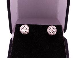 Bid now on this beautiful pair of Sterling Silver diamond melee & diamond cut settings earrings. They will brighten anyone's day and always keep their sparkle and shine year after year. Bid now on this for your partner, or even for you!