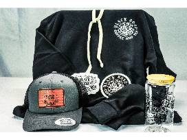 The swag that is included: one ball cap, one clear coffee tumbler with straw, one Black Rose Coffee Sticker and one Black Rose Hoodie size medium.