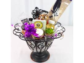 The basket includes: Carmel popcorn kernels 14 oz, Amish rainbow popcorn kernels 14 oz, one jar of popcorn caramel glaze, Amish hand cut homemade hand soap 5 oz, fine white popcorn salt, package of Amish cinnamon licorice, feather ink pen, mason jar of Amish seedless Red Rasbery Jam 18 oz, a butterfly pendant and a small succulent.
