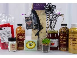 Donated from the New Creation Thrift store in Shasta Lake City is this fun filled basket of Amish products.