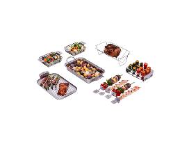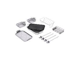 Add versatility to your grill with the EZ Grilling System Set. Each item works well on their own or together and are constructed of stainless steel. This set includes a roasting pan, cutting board, steamer tray, roast/rib rack, pepper roaster, two (2) veggie baskets, and four (4) skewers with sliders. Best part, they are all dishwasher safe. Don't miss out on this awesome set, just in time for summer!