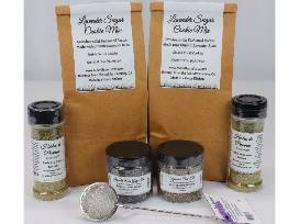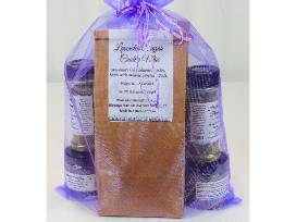 In it there are: two 2oz. bottle of Herbs de Provence, ingredients are: Rosemary, Summer Savory, Thyme, Basil, Marjoram, Organic Lavendar Buds, Parsley, Fennel Seed, Oregano, Tarragon and Bay Powder. and 1 4oz. jar of Lavender Earl Grey Tea, and a 4oz. jar of Lavender Chai Tea, a tea strainer and two bags of Lavender Sugar Cookie Mix.
