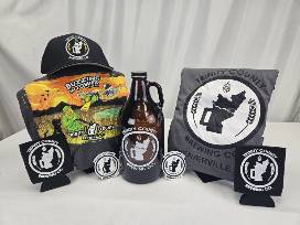 You can bid on this basket from Trinity County Brewing Co. It includes a t-shirt size XL, one tank top size 2X , 1 hat, 2 koozies and a growler for your favorite beer to take home.