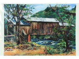 In this package you will get, a gift certificate for 2 classes for a child to learn to paint. You will also receive 1 print of the Senator Theatre in Chico that measures 12" x 18". There is also a 1 watercolor print of flowers measuring 12" x 18". Lastly, you will also receive 1 print of a Covered Wooden Bridge that measures 15" x 12".