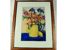 This particular piece of art was donated by the Chico Art School. The school was established by Janet Lombardi Blixt. The school teaches painting, drawing, collage and more in a fun and supportive environment. This piece set in a beautiful matting and frame measuring 22 inches wide and 27 inches in length.