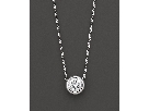 Delicate 18" white gold chain holds a diamond set in a white gold bezel. The diamond weight is .026 points.