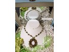 1 Swarovski Pearls, Bicone Czech fire polished beads, Necklace, Gold Plated Clasp, 21" Long