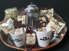 Enjoy Don Francisco Coffee items with French Coffee Press and 2 Coffee Mugs
