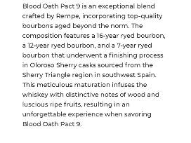 Blood Oath Pact No. 9 is a top-quality bourbon crafted by Rempe, and aged beyond the norm.