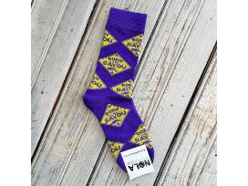 Two pairs of Socks: Born on the Bayou socks and Mardi Gras Oyster Socks, unisex.