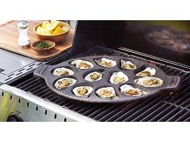 Use this versatile 12-section pan to grill oysters on the half shell or shucked. Constructed of heavy duty cast iron, it features a seasoned, non-stick coating for easy release and cleaning. You can also use it to make single serving mac & cheese, drop biscuits, mini corn bread, and more. Fire up your creativity.