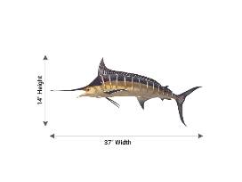 This marlin is a simply amazing looking piece of metal wall art and a fantastic addition to any home decor or outdoor lawn and garden decor collection! The marlin is made in the USA out of American steel, making the product among the most durable and longest lasting metal wall art products on the market today! The marlin comes with hang tabs on the back for easy hanging! Size: 37 in. L x 14 in. H x 1 in. D