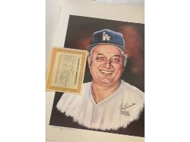 A lithograph of Tommy Lasorda, signed by Tommy Lasorda himself! It is also signed and numbered by the artist, Lee Carvel. Comes with a certificate of authenticity. Item 280/1090.
