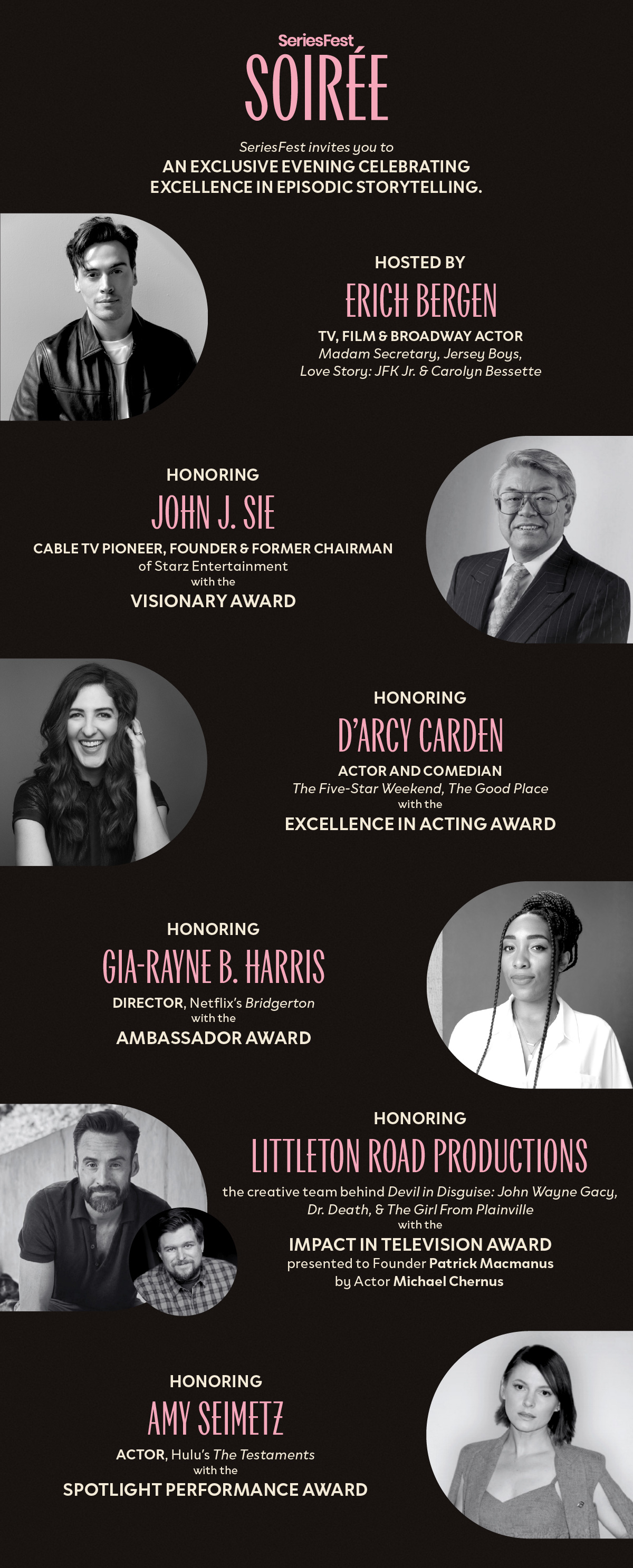 All set within SeriesFest's signature spirit of community and creative ambition, this is an unforgettable evening in support of emerging voices and the future of television.