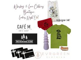 Donated By Whiskey & Lace, The Montana Scene, Evrgreen Clothing, Cafe M, Intrigue Ink & ShoBearRo
