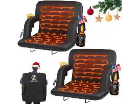 Never be cold at a game again with this 2-pack of Heated Stadium Seats with back support and wide cushions. These foldable chairs have 5 pockets for holding your drink, snacks and cell phone.