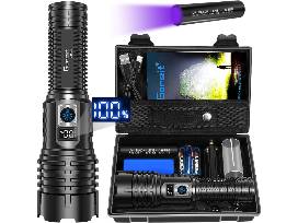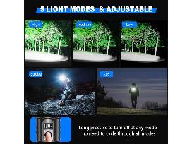 LED 25,000 Lumens Rechargeable Flashlight with 5 modes of brightness.