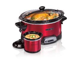 The Hamilton Beach Stay or Go 7 Qt Programmable Slow Cooker. It comes with an extra Party Dipper crock perfect for dips or appetizers.
