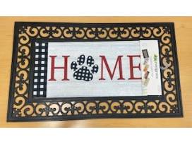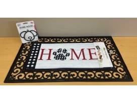 Welcome your guests and pets with this cute black rubber Welcome Mat with interchangeable insert. Comes with mat, Welcome Home insert and cute Kobe Dog Hook for your furry friends leash.