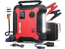 Portable Car Jump Starter with Air Compressor, Can start all Gas/8.0L Diesel vehicles. Digital Tire Inflator, Fast Battery Charger 3.0 with 160W DC Out, and Emergency Light