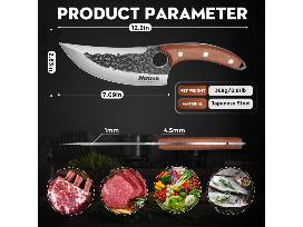 This Huusk Japanese knife is designed by blacksmiths from carbon steel. It has a thicker sourwood handle for a comfortable grip and comes with a sheath for storage.