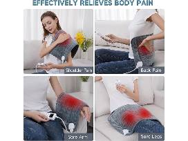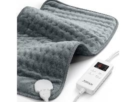 Electric Heating Pad with auto shut-off. It has six heating levels and is machine washable.