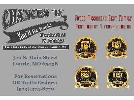 Enjoy a 3 night stay in a beautiful 2 Bedroom Lake Side Condo in Lake of the Ozarks and a $50 Gift Card to Chances "R" Restaurant.