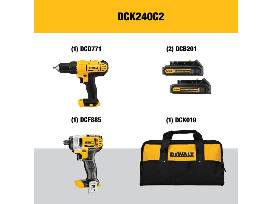 DEWALT - Brush 20V MAX Cordless Drill Combo Kit, 2-Tool (DCK240C2) Yellow/Black Drill Driver/Impact Combo Kit