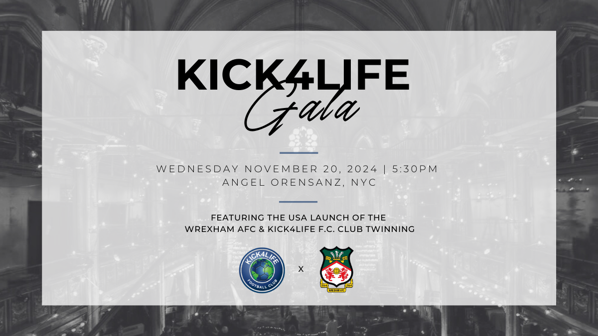 This year the Gala will also celebrate the US launch of the 'Wrexham AFC x Kick4Life F.C. Twinning Partnership'. Wrexham AFC, owned by Ryan Reynolds and Rob McElhenney and featured in the multi-award-winning Disney series Welcome to Wrexham, will work with Kick4Life to strengthen their collective community impact.