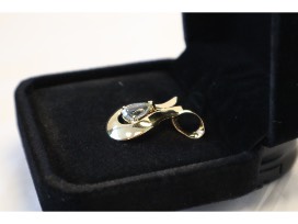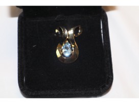 Lady's 14kt yellow gold enhancer pendant containing one (1) pear-shaped sky blue topaz measuring approximately 10x7mm set in 3-prongs. Approximate gold weight is 4.3 grams.