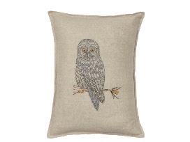 Great Grey Owl embroidered pillow measuring 12" x 16"