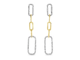 As seen on The BACHELORETTE, you'll look fabulous with these Brevani gold & diamond paperclip link earrings from Hillcrest Designer Jewelry. The pair of earrings weighs approximately 2.21grams with an approximate total diamond weight of .30ctw.