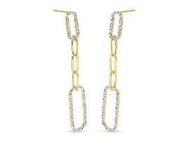 14K Yellow Gold Diamond Paperclip Link Long Earrings