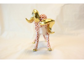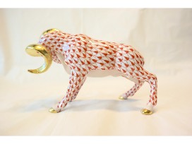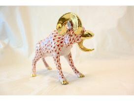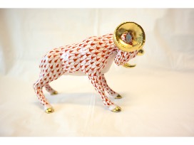 From Martin's Herend Imports, a Porcelain "Charging Ram" Figurine in Rust Fishnet with 24K Gold Accents. The hand painted ram measures 5.25" x 2.5" x 3.75" and was hand made in Hungary.