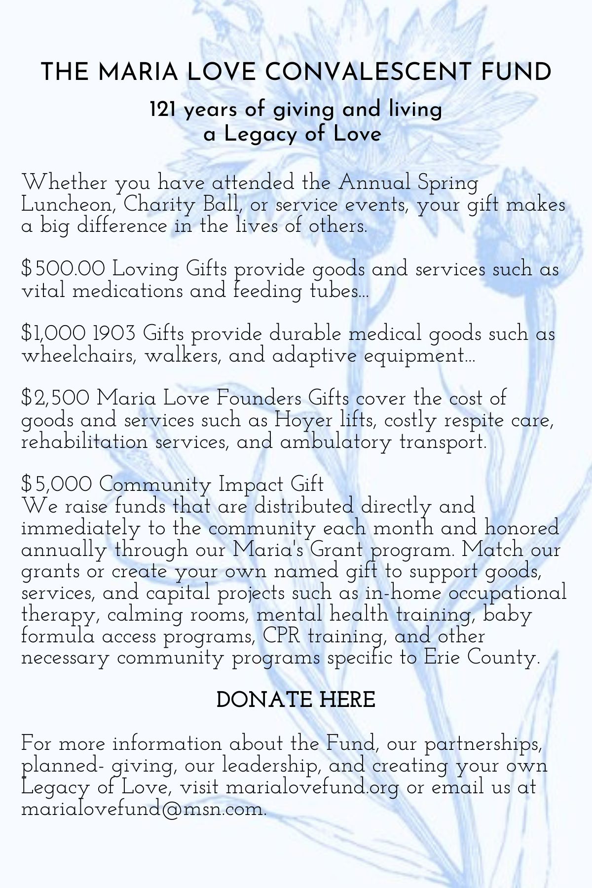 The Maria M. Love Convalescent FundQuestions? Please email us at