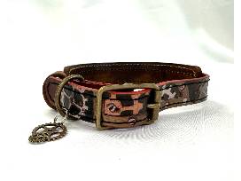This leather 24-inch steampunk dog collar is simply amazing! This collar features a brown base and has a red overlay painted over with various colors of gears. Gear charms of various finishes are embedded along the collar and a gold and bronze-colored charm of two overlapping gears hangs from the gold hardware. Your dog will proudly walk beside you!