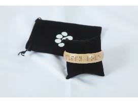 This bracelet has the words "Puppy Love" engraved in a playful font as well as imbedded in Braille. Who wouldn't want to remind the world of how much they love their puppy? This beautiful, handcrafted bracelet is made from rock maple. It is an elegant 3.25 by 3-inch elliptical shape. The craftsman used a combination of traditional woodworking methods and computer driven woodworking tools to produce the bracelet. The process he used is one he developed himself.